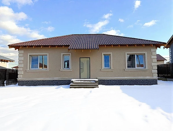 - Кровля: Четырехскатная из метало-черепицы с установкой снегозадержателей и водосточной системы;