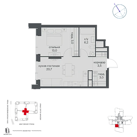 Купить 2к квартиру 67 м² в апарт-комплексе SLAVA (Слава)