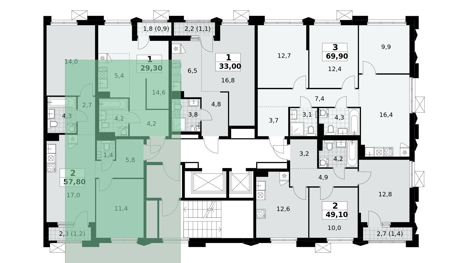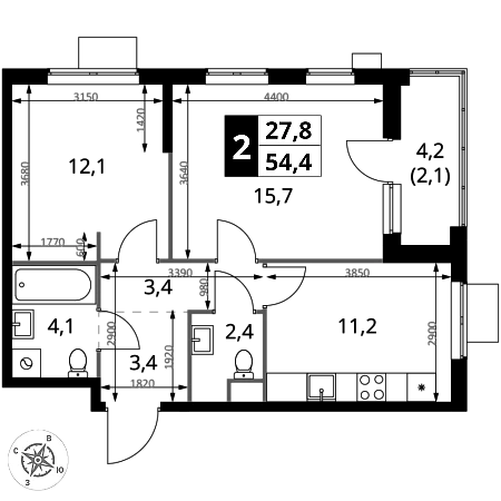 Продаётся 2-к квартира номер 236 общей площадью 54.4 кв.м. на 21-м этаже 25 этажного здания. Чистовая отделка. Цена с учётом скидки.