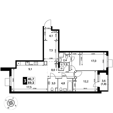 Купить 3к квартиру 89 м² в ЖК 1‑й Измайловский