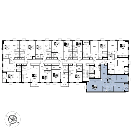 Продаётся 3-к квартира номер 726 общей площадью 89.3 кв.м. на 15-м этаже 15 этажного здания. Отделка Whitebox. Цена с учётом скидки.