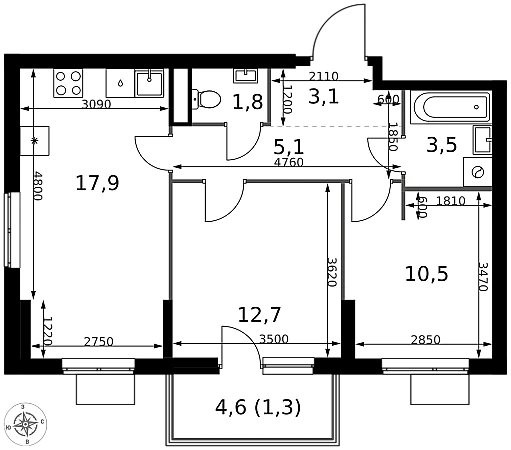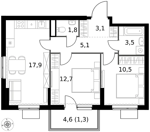 - Раздельный санузел - больше удобства для всех членов семьи.