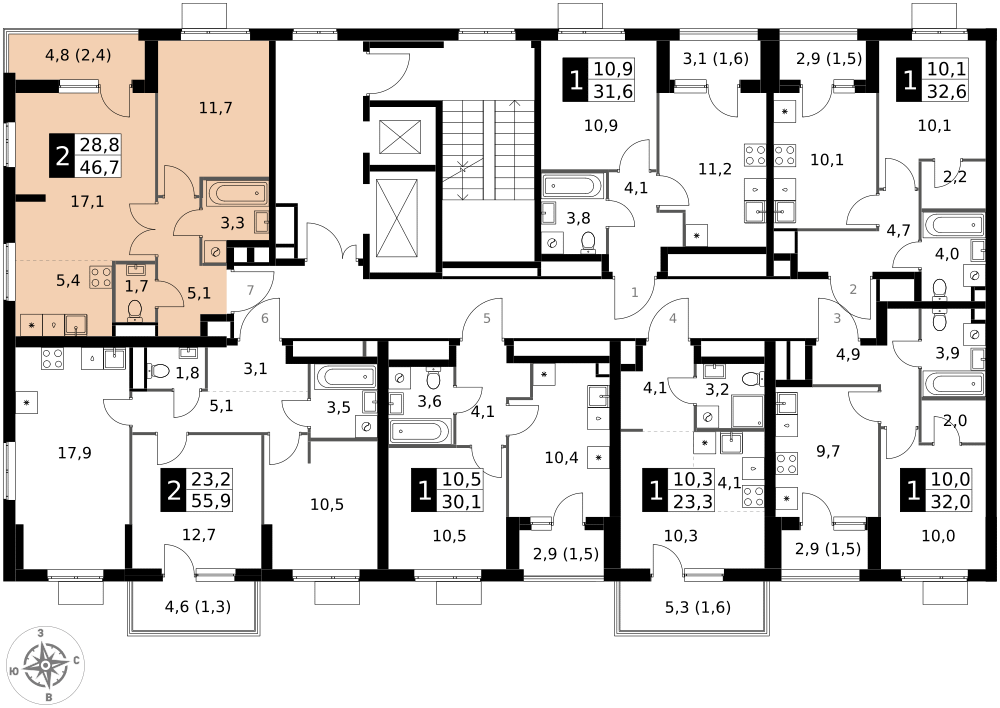 Продаётся 2-к квартира номер 14 общей площадью 46.7 кв.м. на 3-м этаже 24 этажного здания. Чистовая отделка. Цена с учётом скидки.