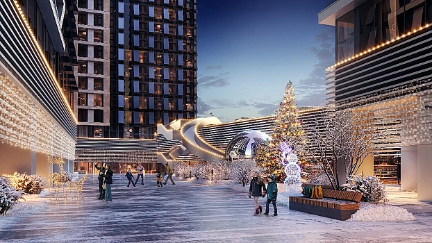 - Спортивная среда: закольцованный веломаршрут с навигацией, спортивный комплекс с термами, закрытый тренажерный зал и зоны ворк-аута