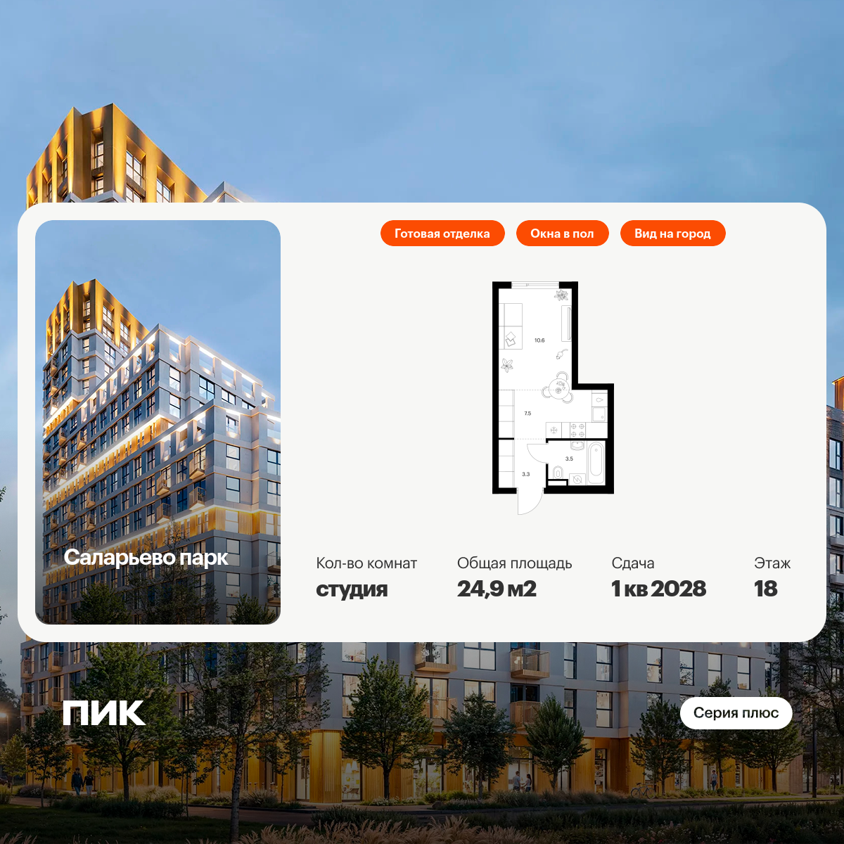 Купить 1к квартиру 37 м² в ЖК 1‑й Химкинский