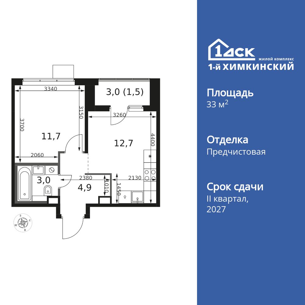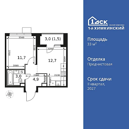 Купить 1к квартиру 33 м² в ЖК 1‑й Химкинский