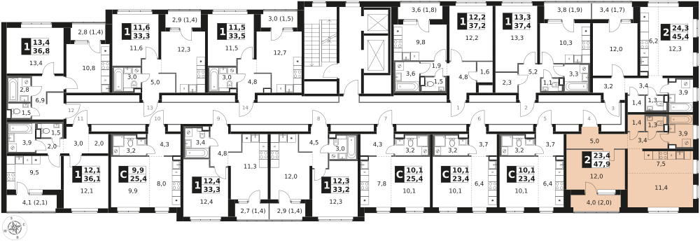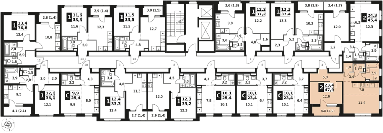 Продаётся 2-к квартира номер 4 общей площадью 47.9 кв.м. на 2-м этаже 17 этажного здания. Отделка Whitebox.