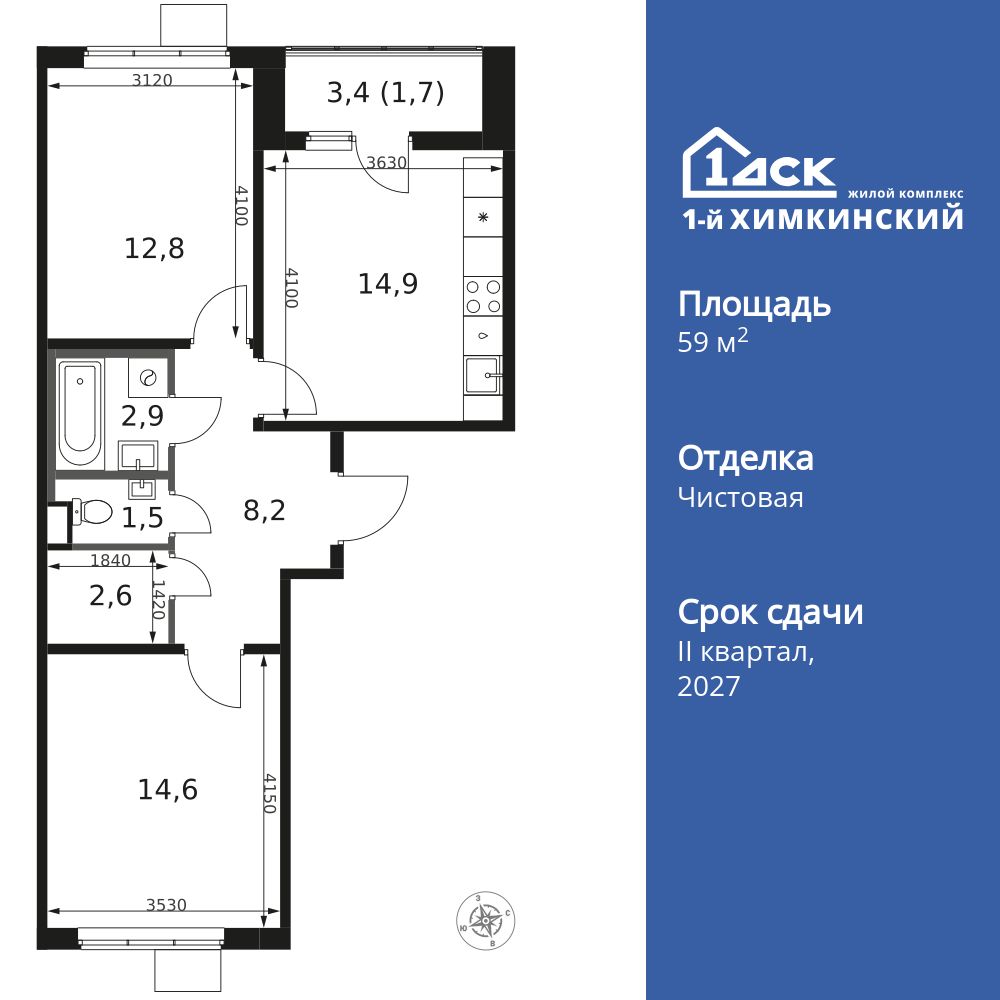 Купить 2к квартиру 59 м² в ЖК 1‑й Химкинский