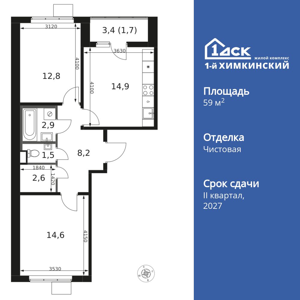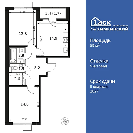 Купить 2к квартиру 59 м² в ЖК 1‑й Химкинский