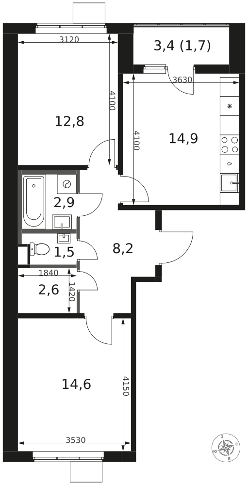 - Раздельный санузел - больше удобства для всех членов семьи.