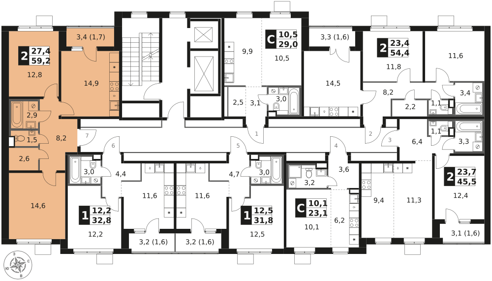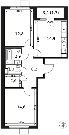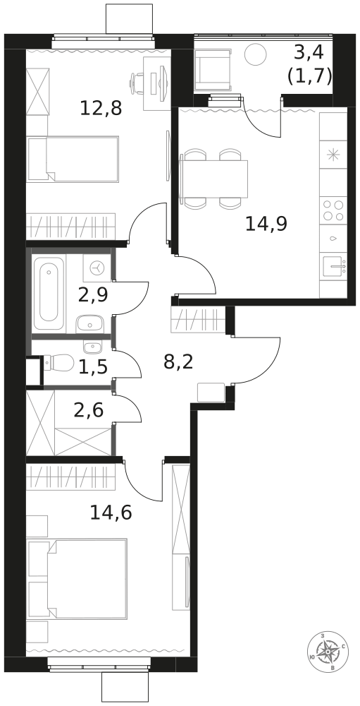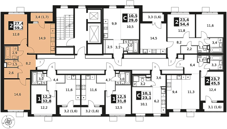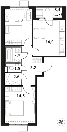 Продаётся 2-к квартира номер 315 общей площадью 59.2 кв.м. на 14-м этаже 14 этажного здания. Чистовая отделка.