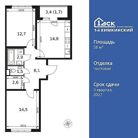 Купить 2к квартиру 58 м² в ЖК 1‑й Химкинский