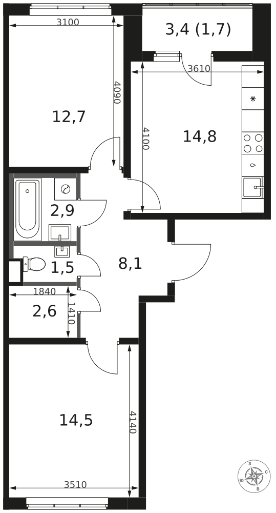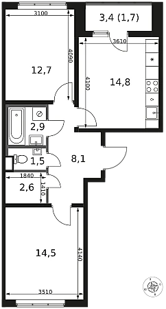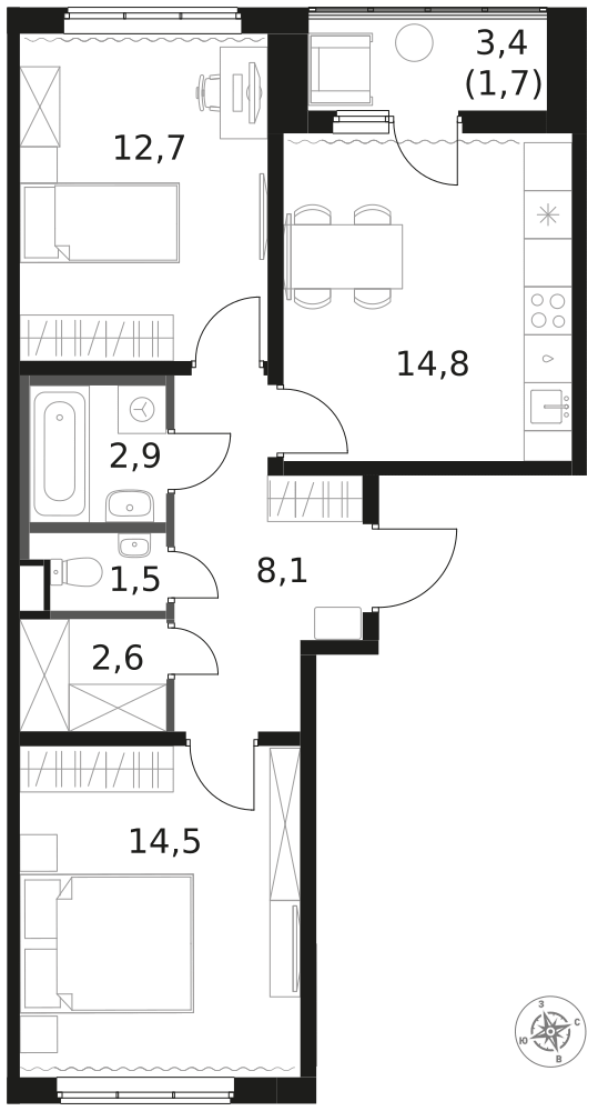 - Раздельный санузел - больше удобства для всех членов семьи.
