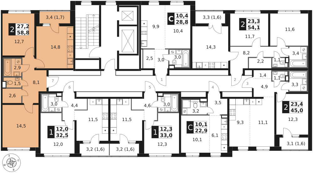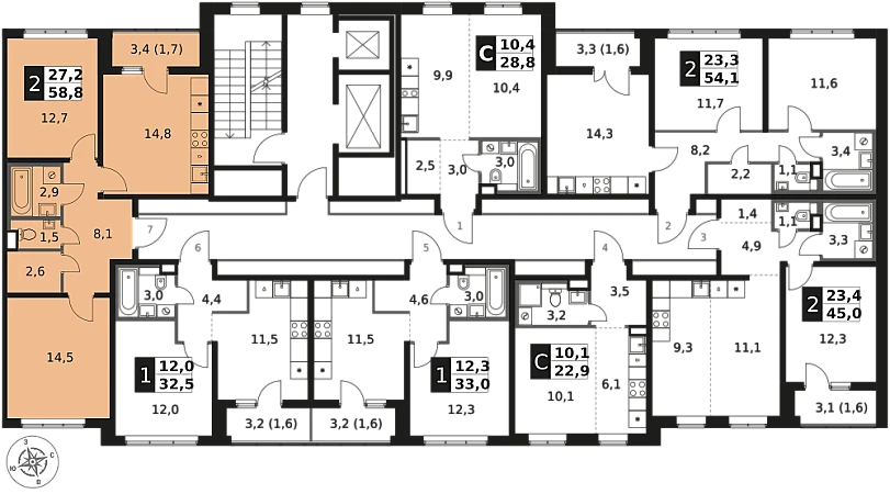 Продаётся 2-к квартира номер 231 общей площадью 58.8 кв.м. на 2-м этаже 14 этажного здания. Чистовая отделка.