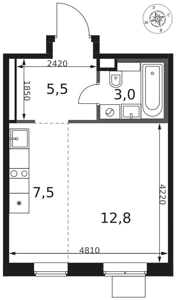 Продаётся квартира-студия номер 497 общей площадью 28.8 кв.м. на 10-м этаже 14 этажного здания. Отделка Whitebox.