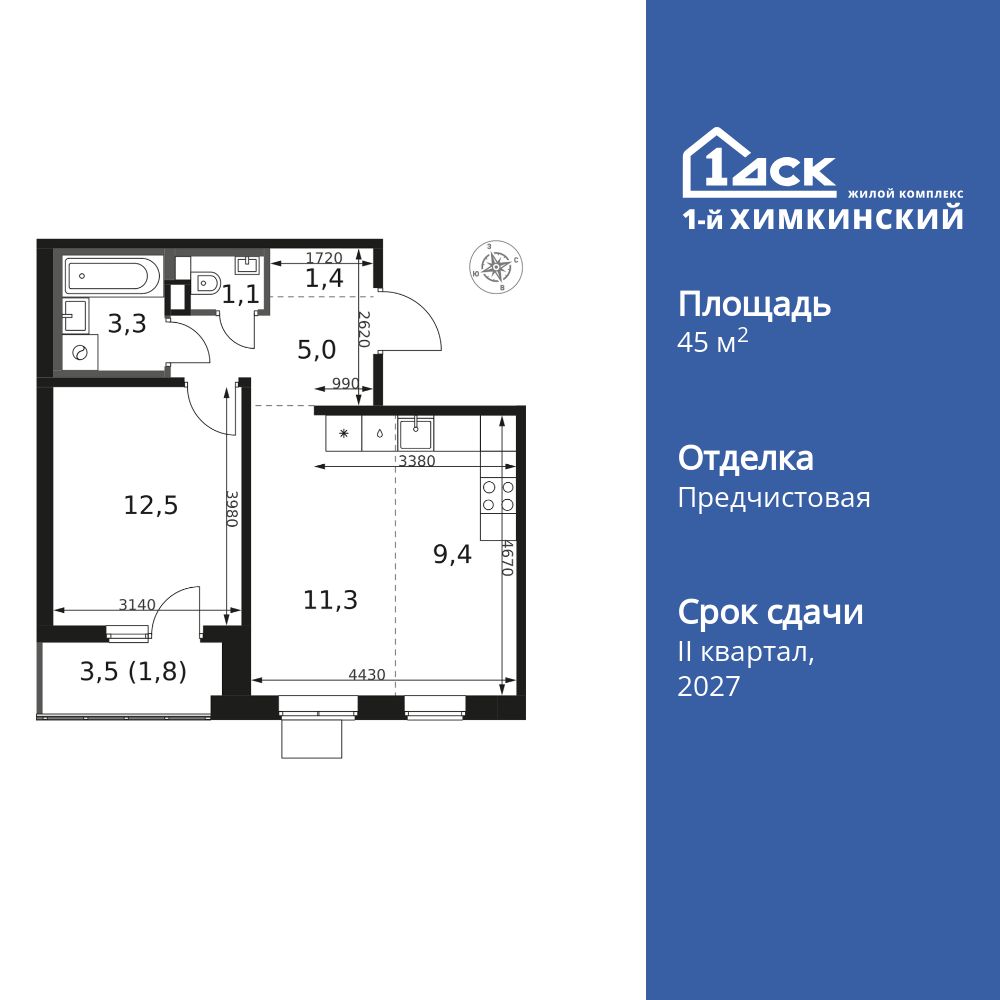 Купить 2к квартиру 45 м² в ЖК 1‑й Химкинский