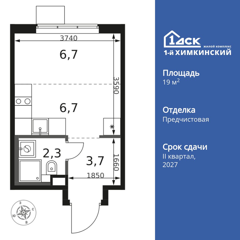 Купить квартиру студию 19 м² в ЖК 1‑й Химкинский