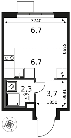 Продаётся квартира-студия номер 620 общей площадью 19.4 кв.м. на 12-м этаже 17 этажного здания. Отделка Whitebox.