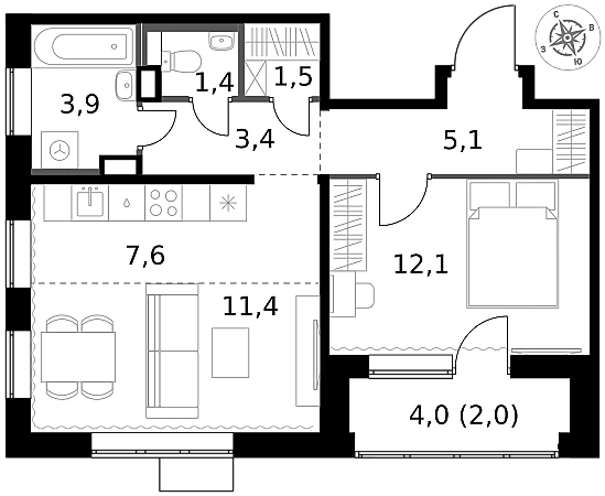 - Раздельный санузел - больше удобства для всех членов семьи.
