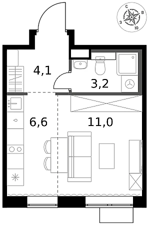 Купить квартиру студию 24 м² в ЖК 1‑й Химкинский