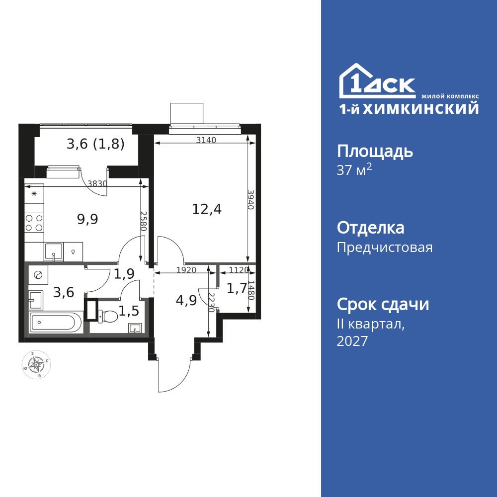 Купить 1к квартиру 32 м² в ЖК 1‑й Химкинский