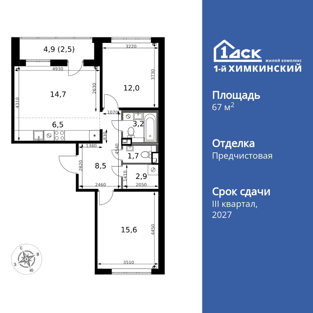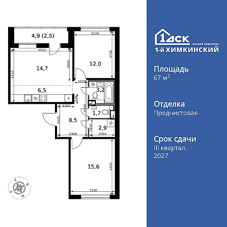 Купить 3к квартиру 67 м² в ЖК 1‑й Химкинский