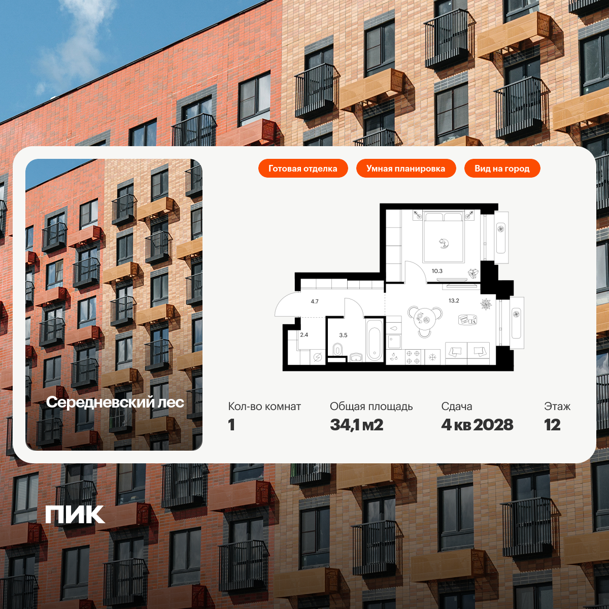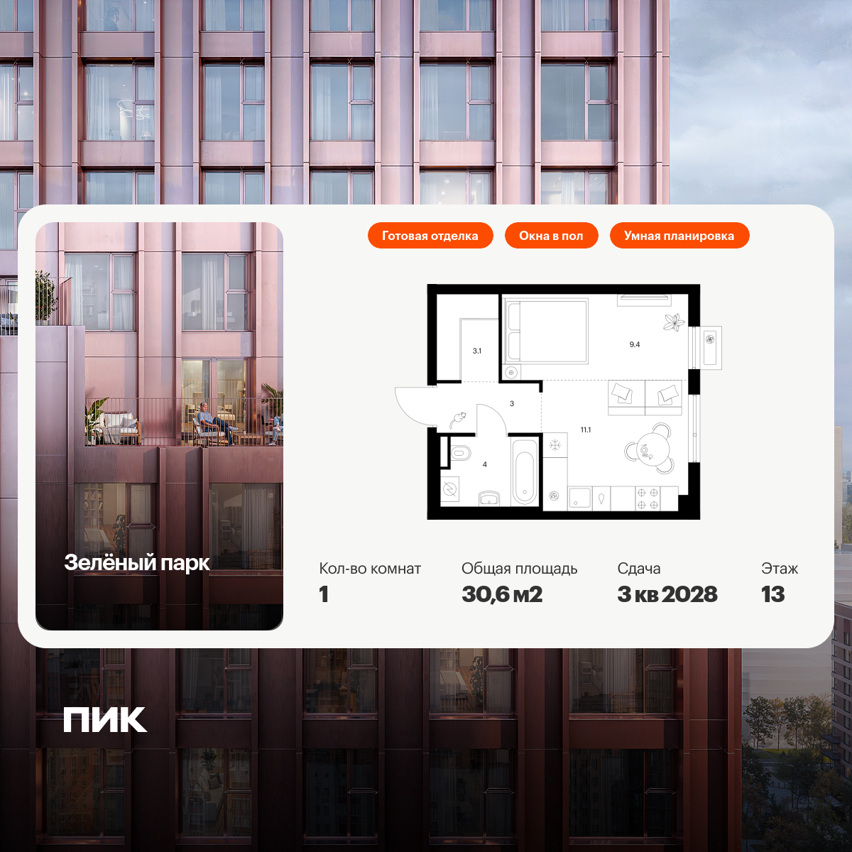 Купить 1к квартиру 38 м² в ЖК 1‑й Химкинский