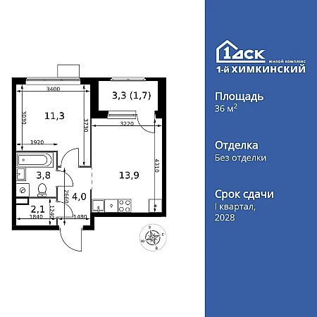 Купить 1к квартиру 36 м² в ЖК 1‑й Химкинский