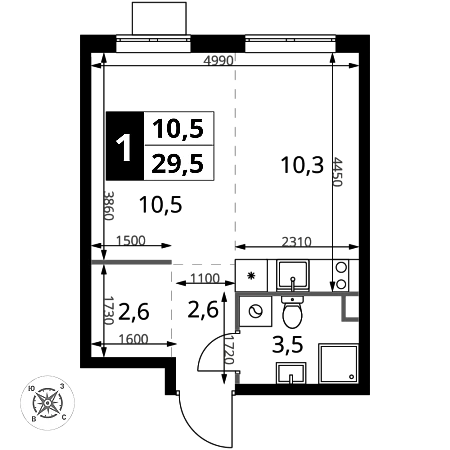 Купить квартиру студию 29 м² в ЖК 1‑й Шереметьевский