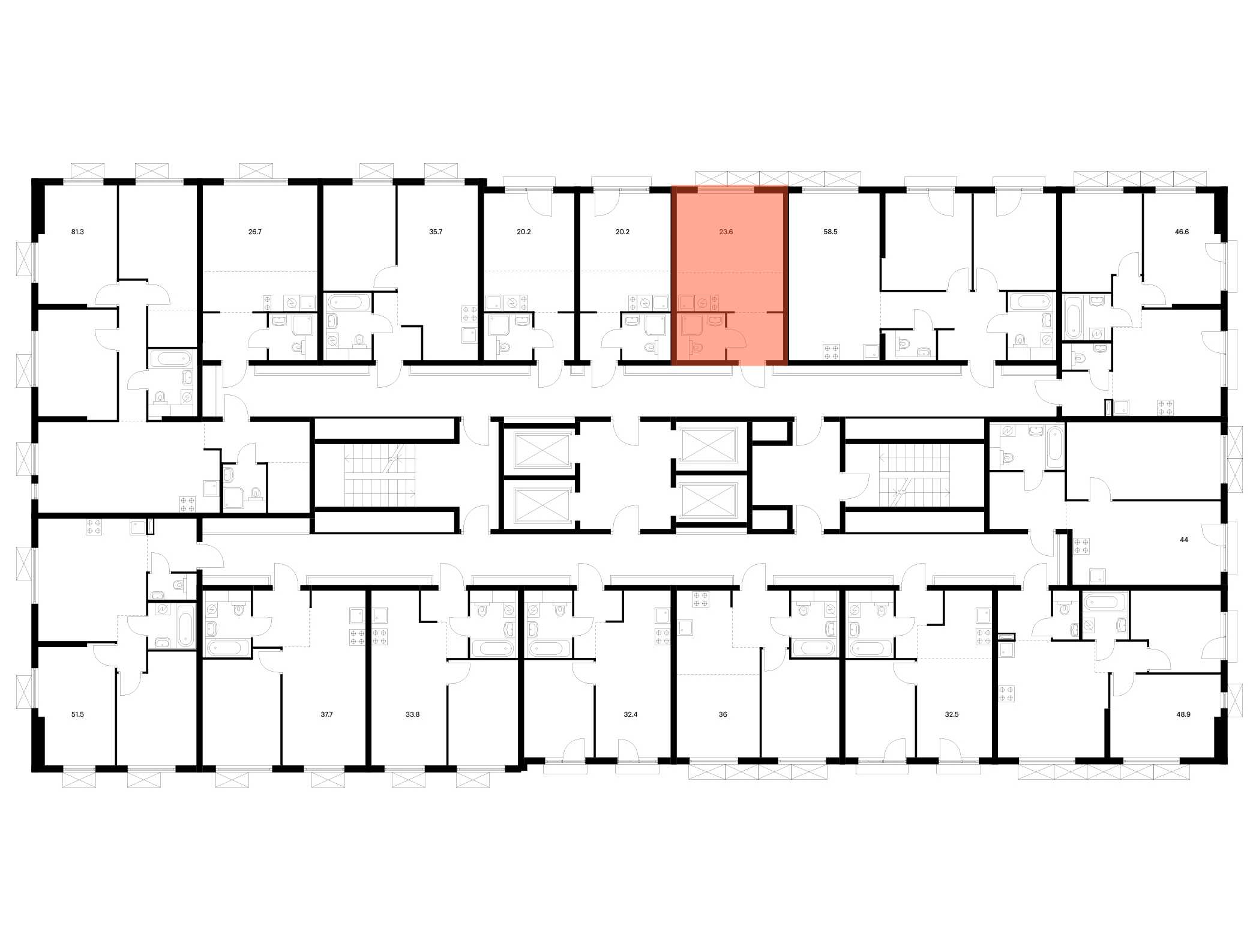 Продаётся квартира-студия номер 86 общей площадью 28.6 кв.м. на 16-м этаже 16 этажного здания. Без отделки.