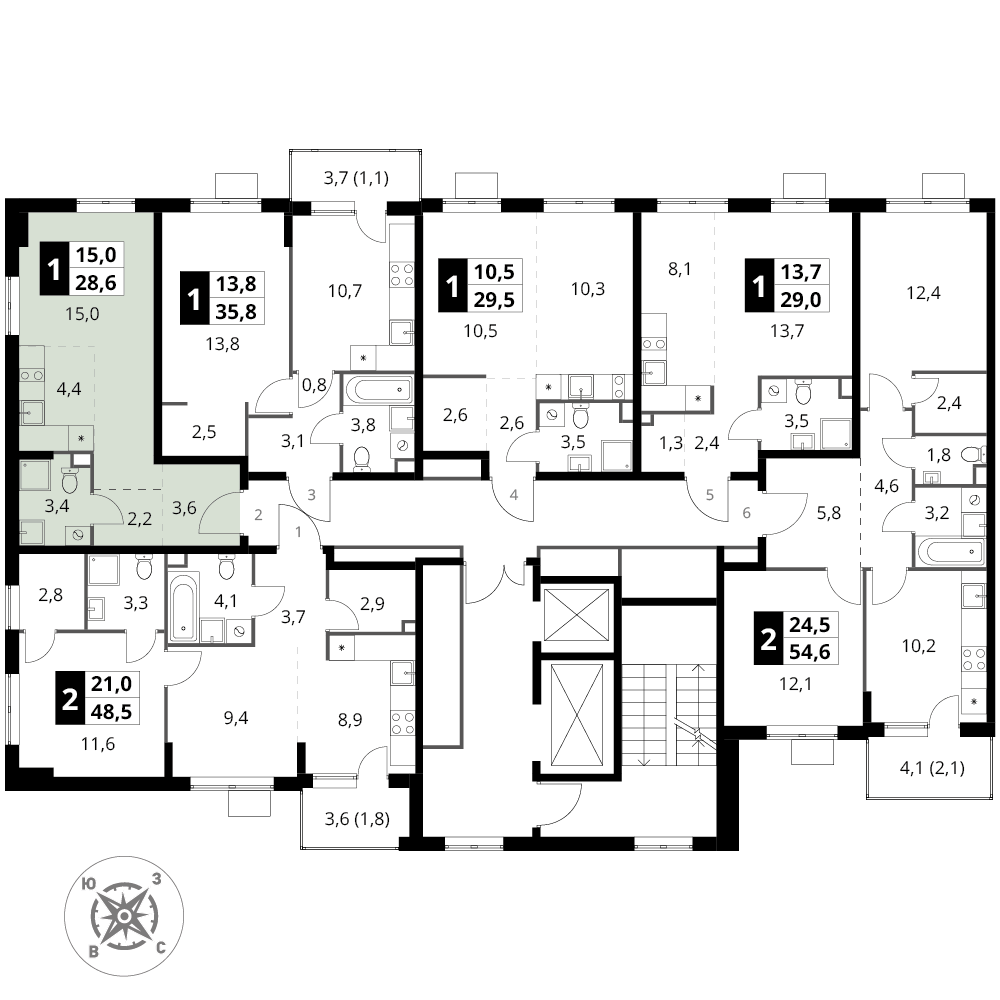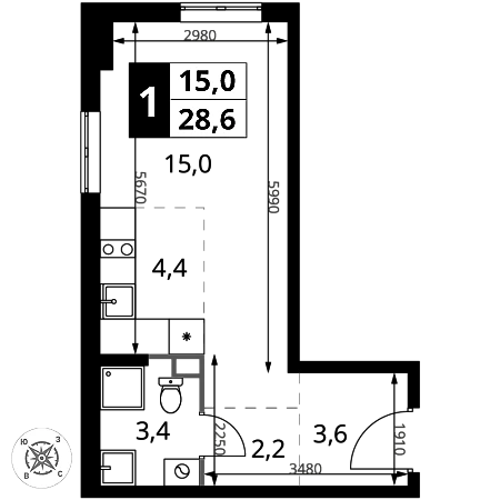 Продаётся квартира-студия номер 2 общей площадью 28.6 кв.м. на 2-м этаже 16 этажного здания. Без отделки.