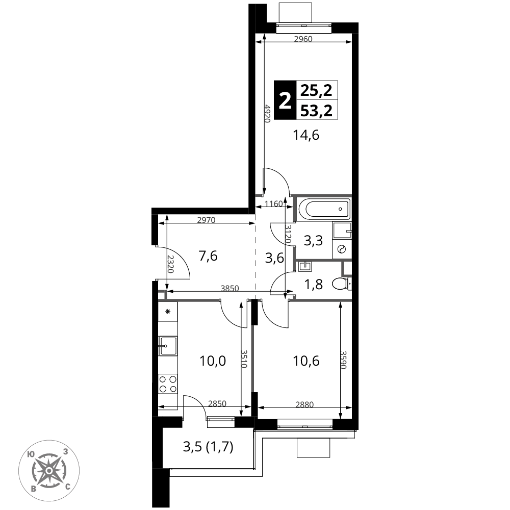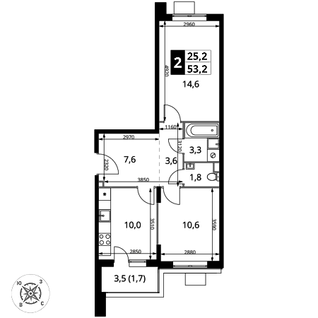 Купить 2к квартиру 53 м² в ЖК 1‑й Шереметьевский