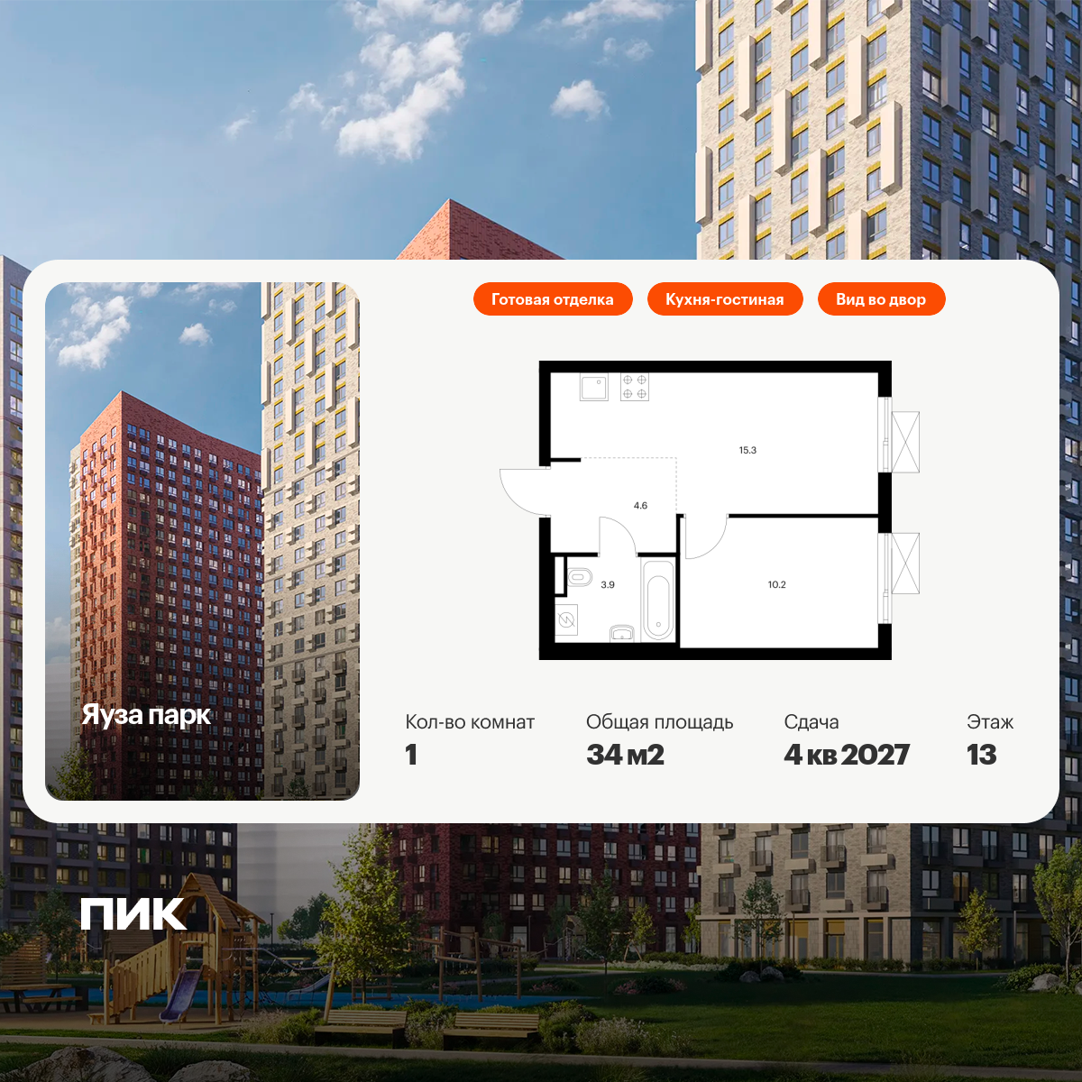 Купить 1к квартиру 34 м² в ЖК 1‑й Шереметьевский