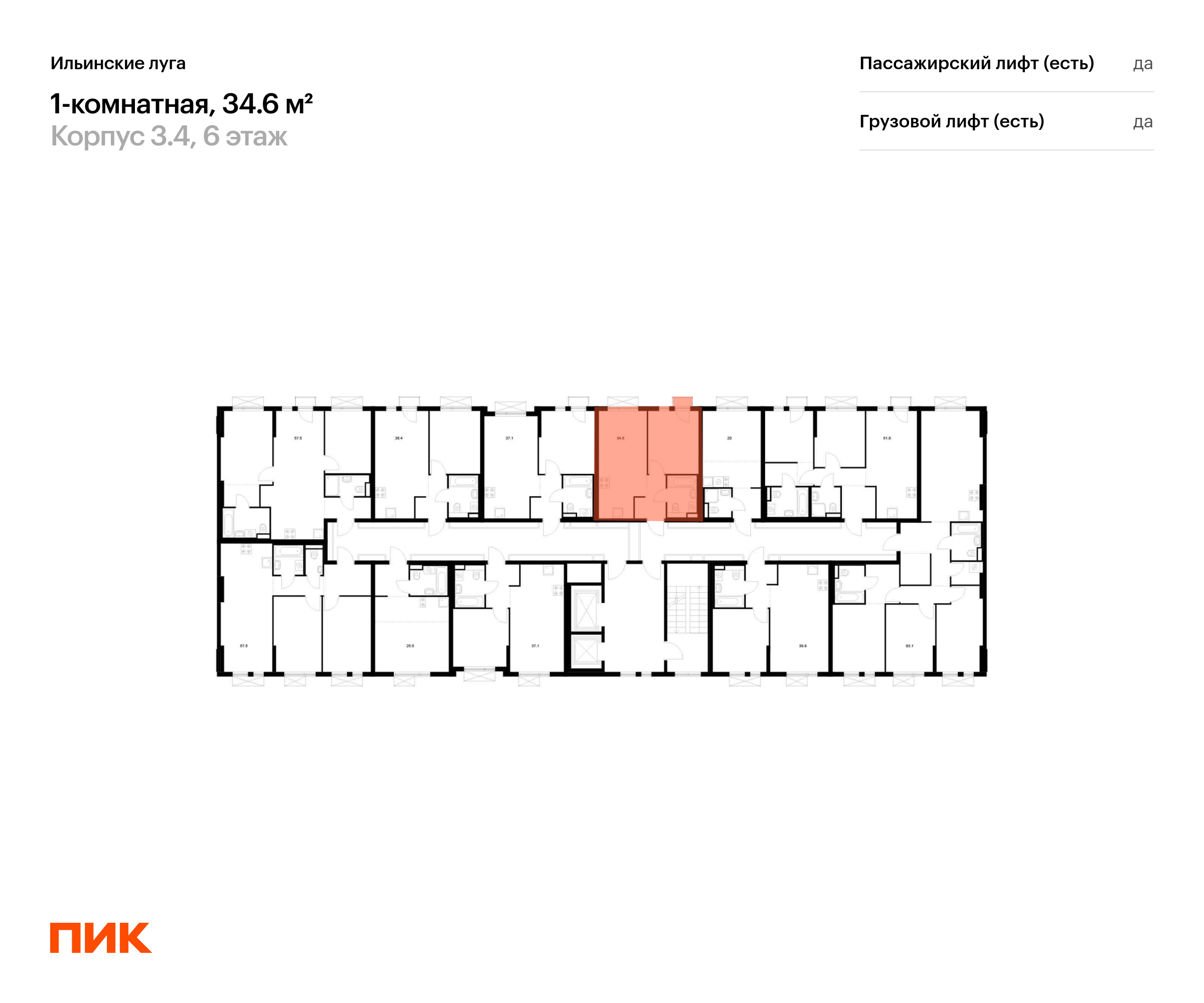 Продаётся 1-к квартира номер 1003 общей площадью 34 кв.м. на 11-м этаже 17 этажного здания. Без отделки.