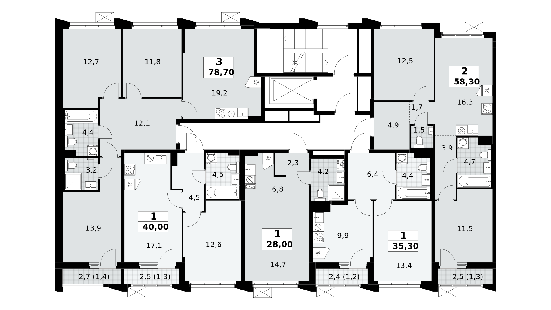 В ЖК 1-й Шереметьевский разнообразие площадей и планировок. Большие кухни-гостиные: в них два окна или больше. Во всех квартирах площадью от 40 кв.м. и выше спроектировано 2 санузла. Большие остекленные лоджии с отделкой.