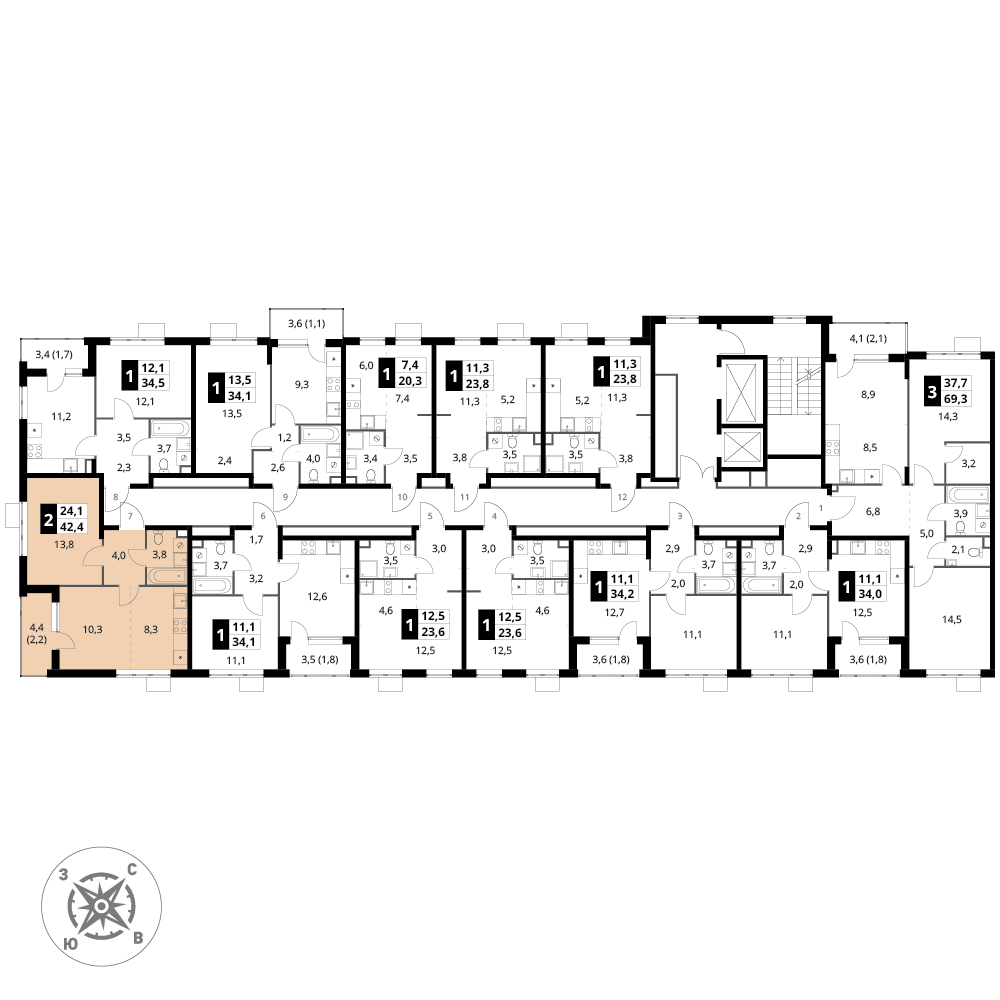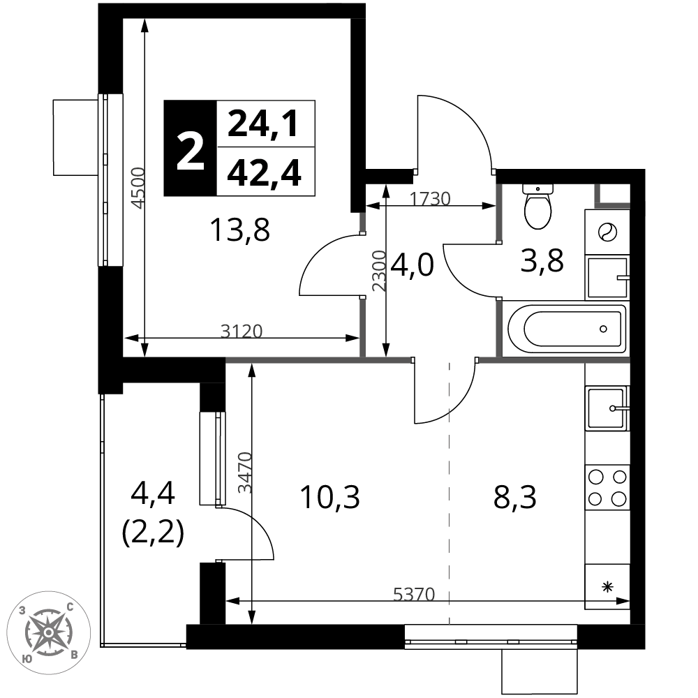 Купить 2к квартиру 42 м² в ЖК 1‑й Шереметьевский