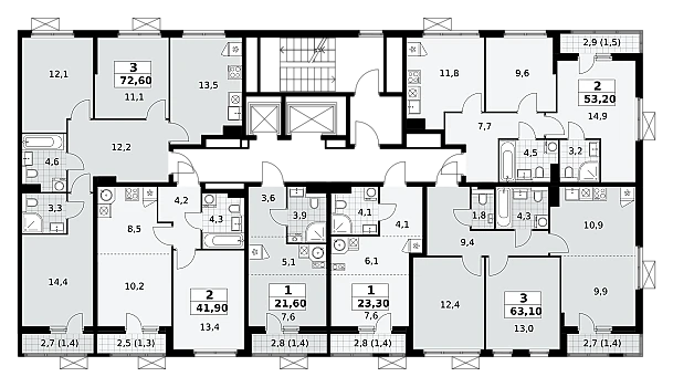 В ЖК 1-й Шереметьевский разнообразие площадей и планировок. Большие кухни-гостиные: в них два окна или больше. Во всех квартирах площадью от 40 кв.м. и выше спроектировано 2 санузла. Большие остекленные лоджии с отделкой.