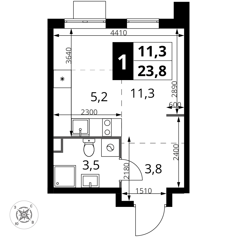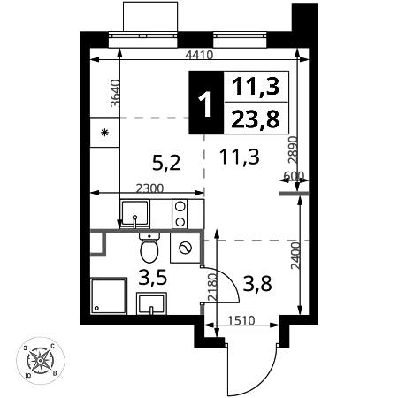 Продаётся квартира-студия номер 1269 общей площадью 23.8 кв.м. на 9-м этаже 17 этажного здания. Без отделки.