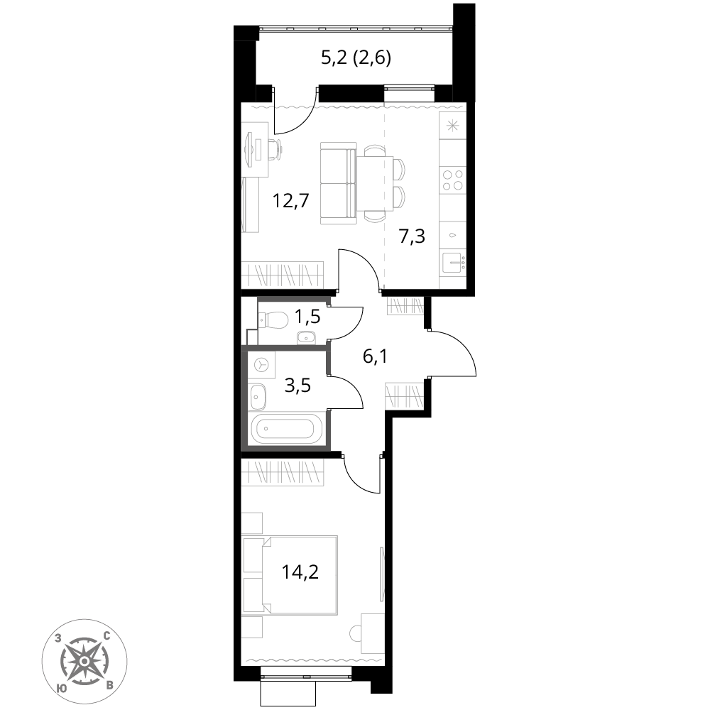 - Линейная планировка - максимальная функциональность и удобство.