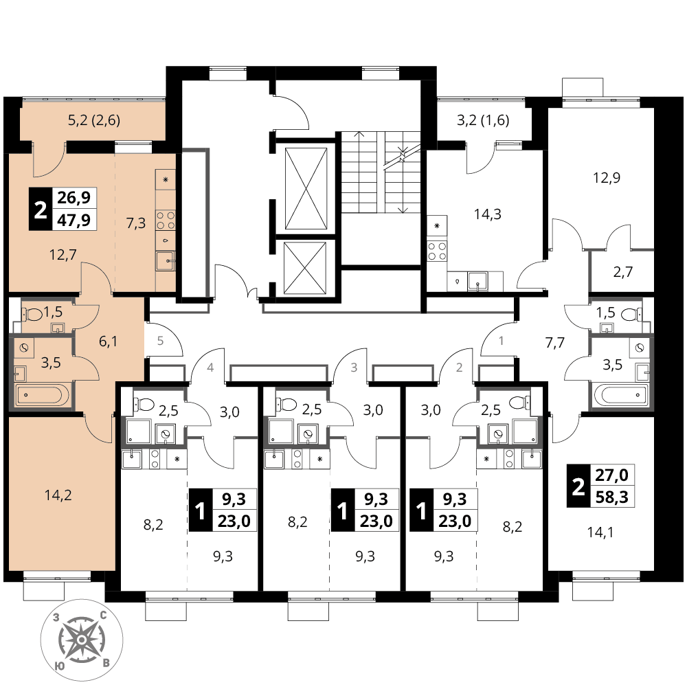 Купить 2к квартиру 49 м² в ЖК 1‑й Шереметьевский