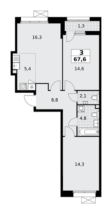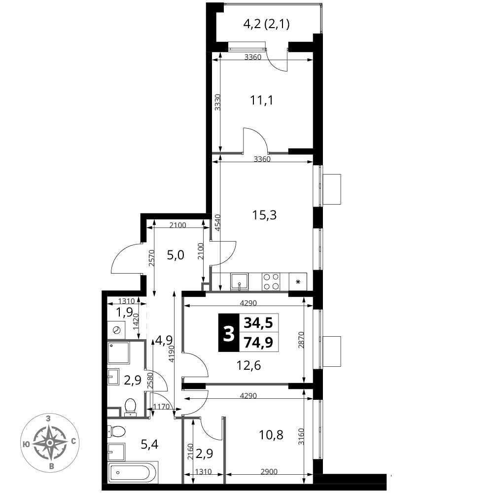Купить 3к квартиру 74 м² в ЖК 1‑й Шереметьевский