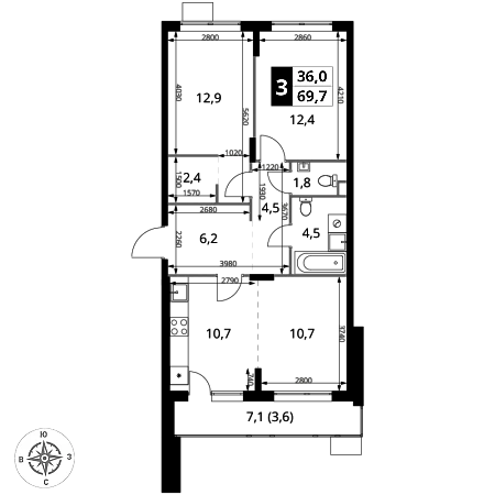 Купить 3к квартиру 69 м² в ЖК 1‑й Шереметьевский