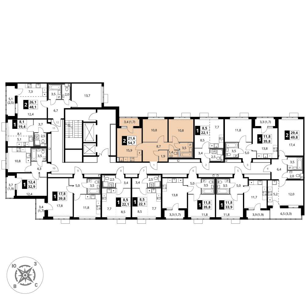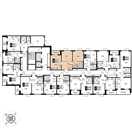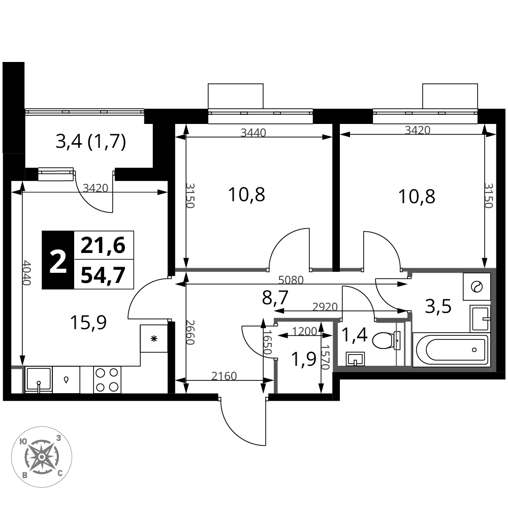 Купить 2к квартиру 54 м² в ЖК 1‑й Шереметьевский