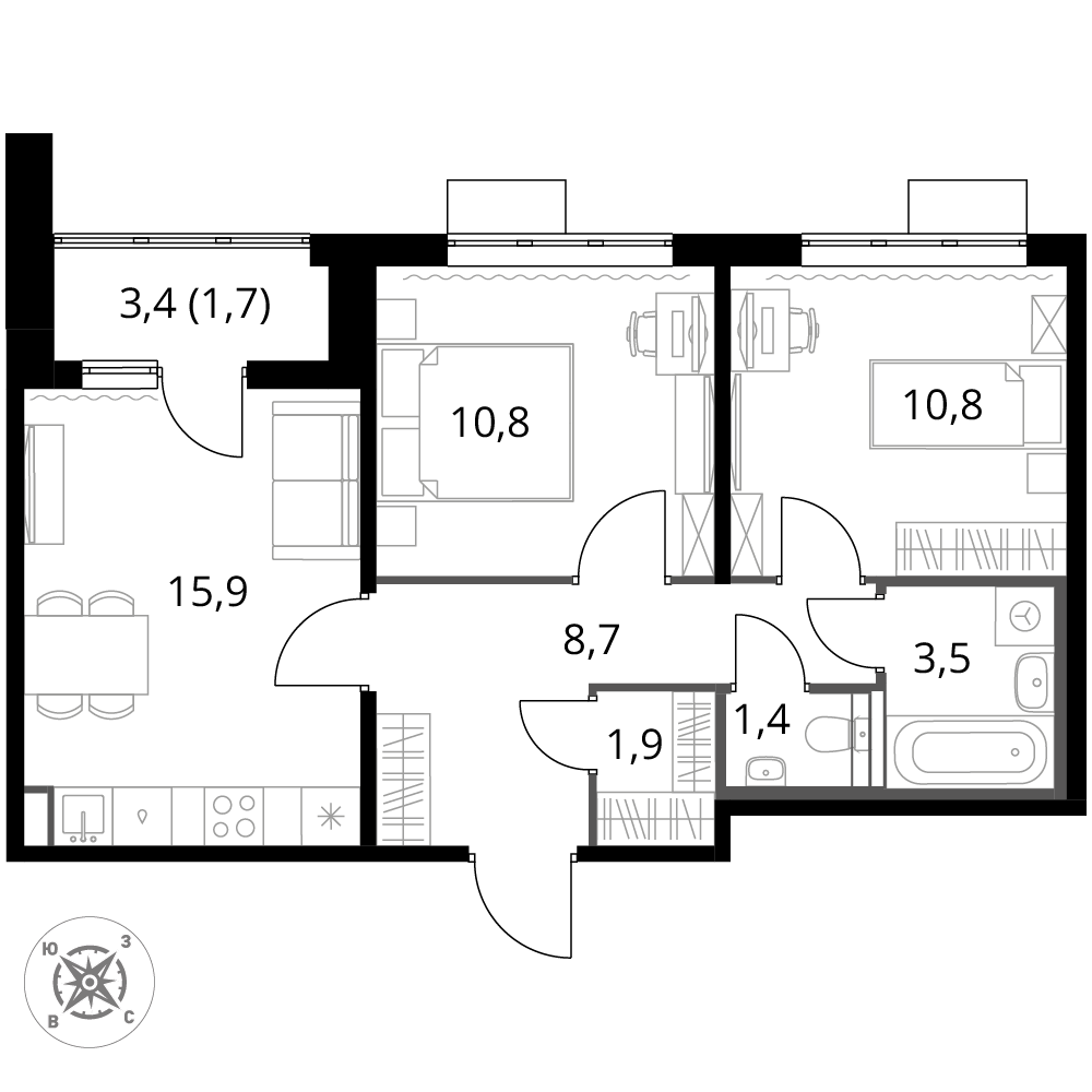 В ЖК 1-й Шереметьевский разнообразие площадей и планировок. Большие кухни-гостиные: в них два окна или больше. Во всех квартирах площадью от 40 кв.м. и выше спроектировано 2 санузла. Большие остекленные лоджии с отделкой.