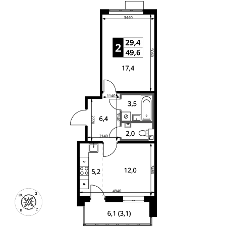 Продаётся 2-к квартира номер 1003 общей площадью 49.6 кв.м. на 14-м этаже 16 этажного здания. Чистовая отделка. Цена с учётом скидки.
