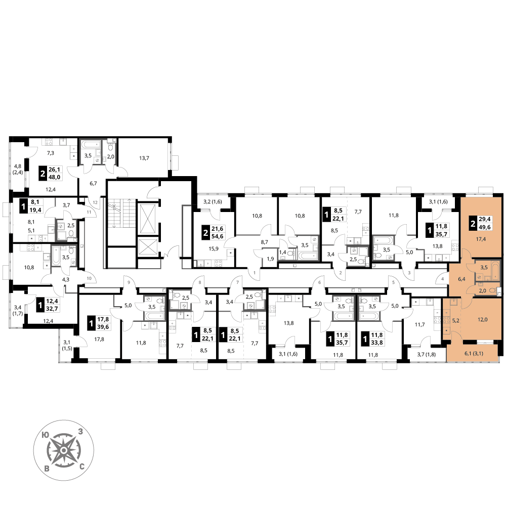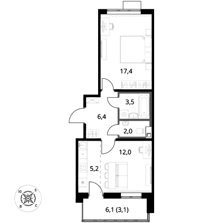 Купить 2к квартиру 49 м² в ЖК 1‑й Шереметьевский
