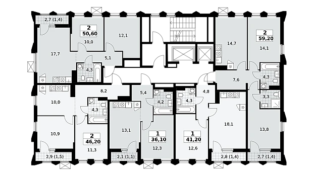В ЖК 1-й Шереметьевский разнообразие площадей и планировок. Большие кухни-гостиные: в них два окна или больше. Во всех квартирах площадью от 40 кв.м. и выше спроектировано 2 санузла. Большие остекленные лоджии с отделкой.