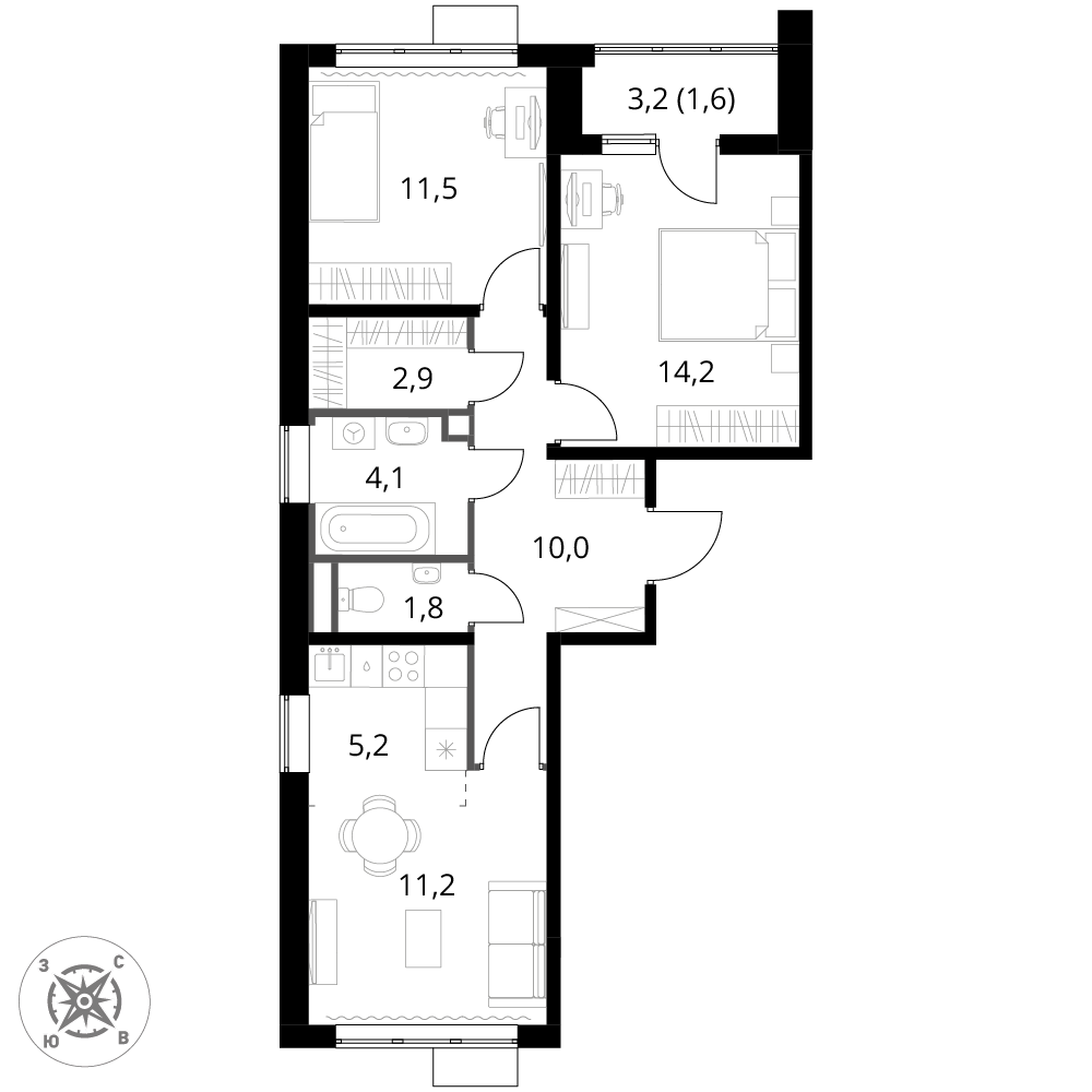 В ЖК 1-й Шереметьевский разнообразие площадей и планировок. Большие кухни-гостиные: в них два окна или больше. Во всех квартирах площадью от 40 кв.м. и выше спроектировано 2 санузла. Большие остекленные лоджии с отделкой.