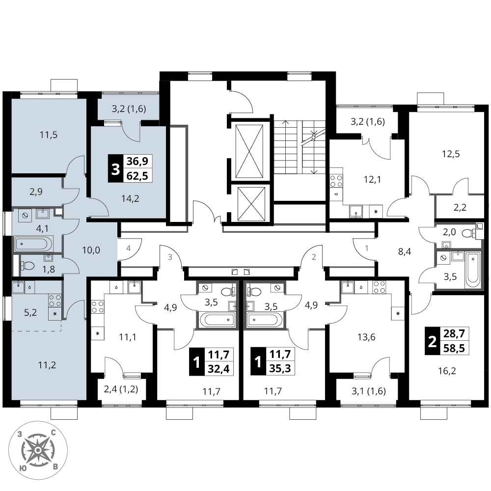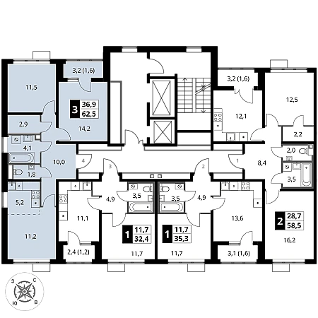 Купить 3к квартиру 62 м² в ЖК 1‑й Шереметьевский