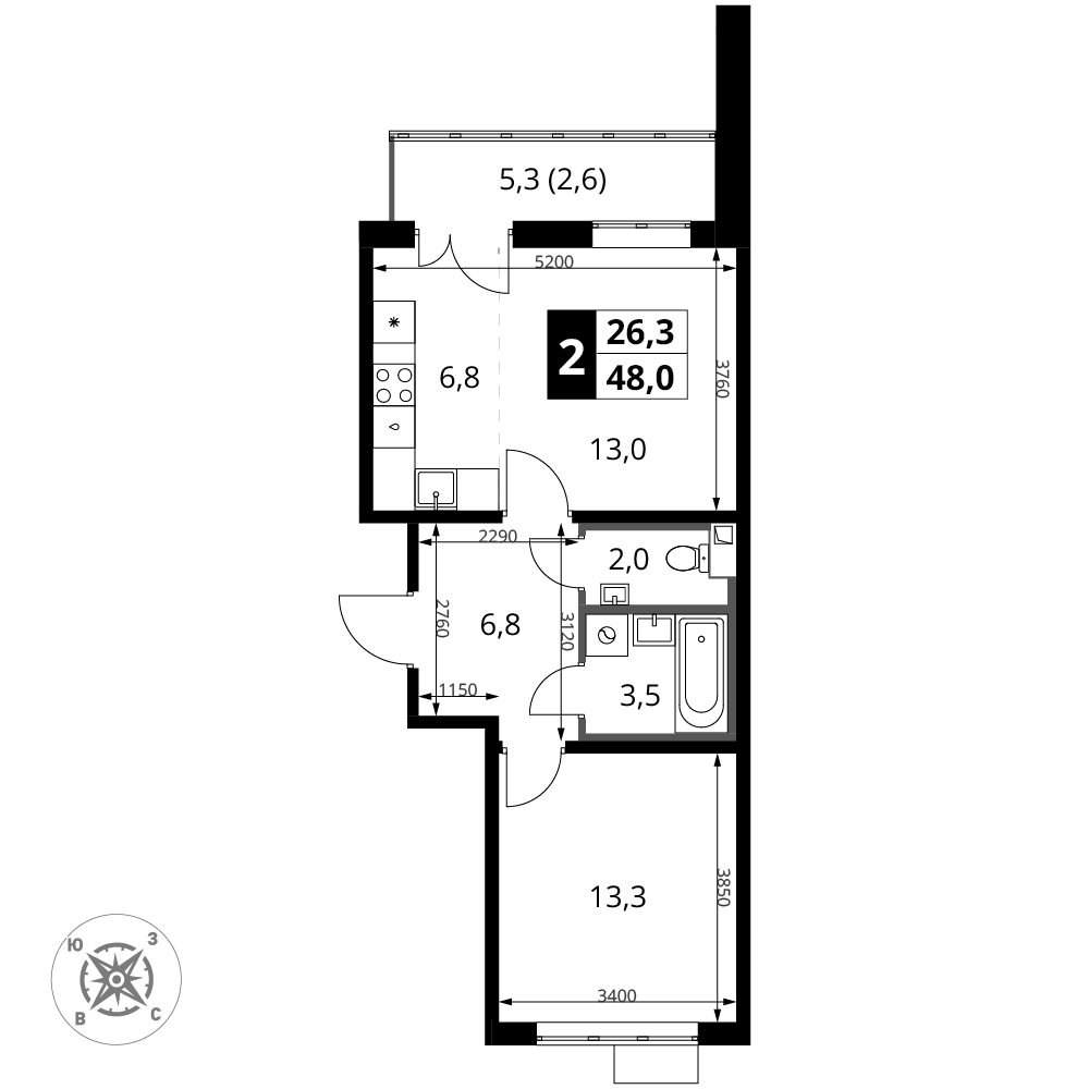 Купить 2к квартиру 48 м² в ЖК 1‑й Шереметьевский